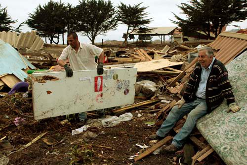 Coastal Chile has a history of very large earthquakes. Since 1973, there have been 13 events of magnitude 7.0 or greater. The February 27 shock originated about 230 km north of the source region of the magnitude 9.5 earthquake of May, 1960 – the largest earthquake worldwide in the last 200 years or more. This giant earthquake spawned a tsunami that engulfed the Pacific Ocean. An estimated 1600 lives were lost to the 1960 earthquake and tsunami in Chile, and the 1960 tsunami took another 200 lives among Japan, Hawaii, and the Philippines. Approximately 870 km to the north of the February 27 earthquake is the source region of the magnitude 8.5 earthquake of November, 1922. This great quake significantly impacted central Chile, killing several hundred people and causing severe property damage. The 1922 quake generated a 9-meter local tsunami that inundated the Chile coast near the town of Coquimbo; the tsunami also crossed the Pacific, washing away boats in Hilo harbor, Hawaii. The magnitude 8.8 earthquake of February 27, 2010 ruptured the portion of the South American subduction zone separating these two massive historical earthquakes. A large vigorous aftershock sequence can be expected from this earthquake.”
